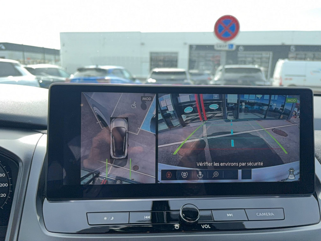 - Nissan AVM 3D - Vision Intelligente à 360° : système d'aide au stationnement qui facilite les manoeuvres de stationnement en vous offrant une vision à 360° : Caméra AR avec repères de gabarit, Caméra AV, Caméras latérales situées dans les rétroviseurs extérieurs, Radars 360°, Fonction ''capot transparent'', Mémorisation stationnement régulier et intersections
